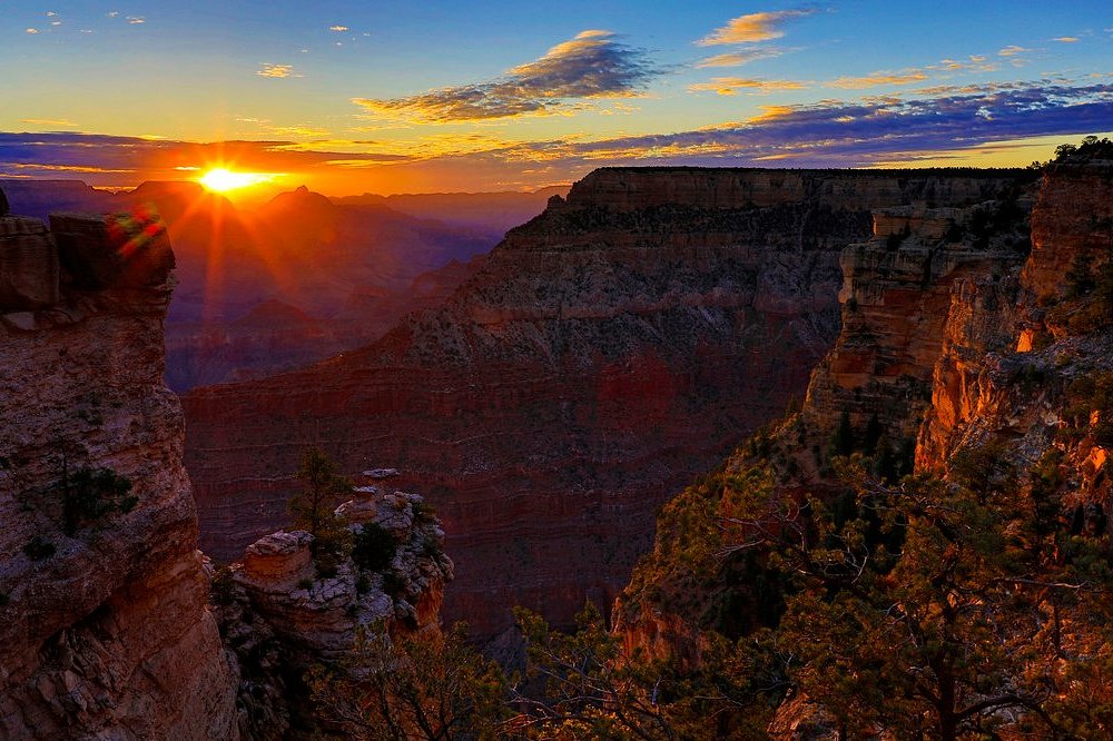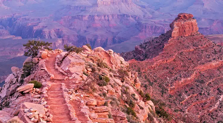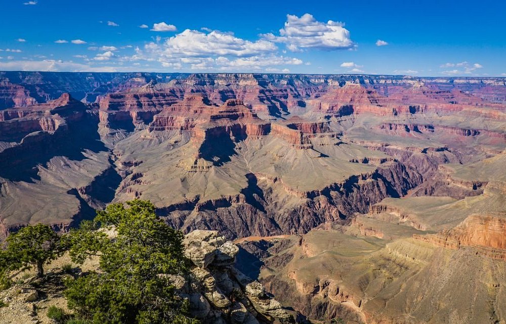 The Grand Canyon is a 277-mile-long canyon in Arizona carved by the Colorado River. It's 6,000 feet deep at its deepest point, 18 miles wide, and averages 4,000 feet deep throughout.